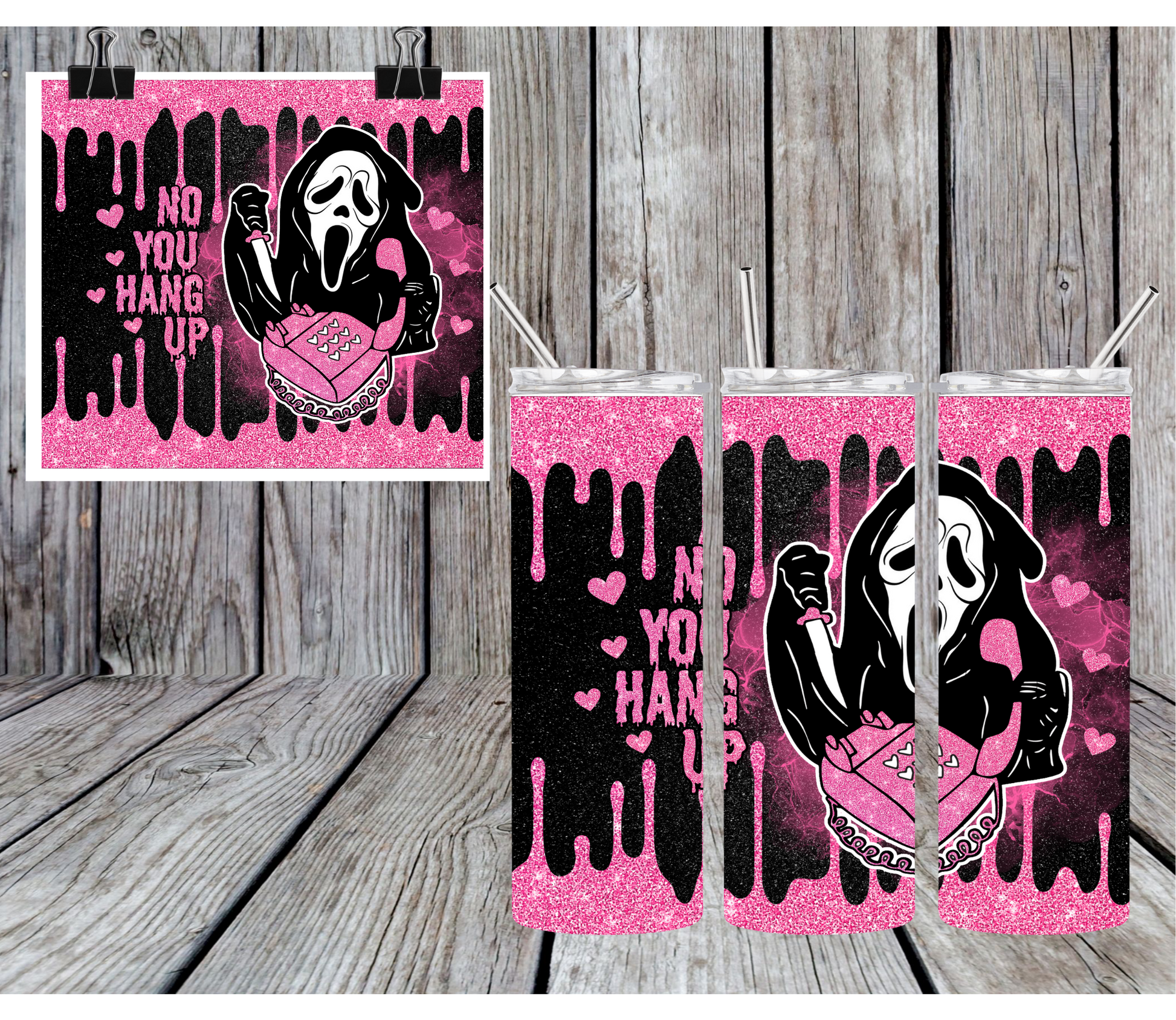 Ghostface sublimation 20 ounce tumbler. Great for keeping your drinks cold or hot...and have a little fun with it. Comes with lid, straw and bottom rubber bumper. Hand Wash only.
